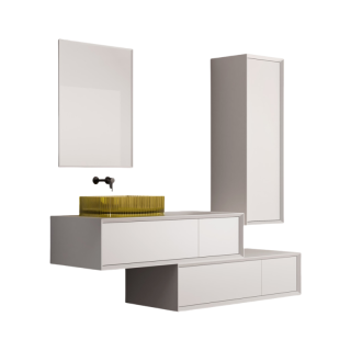 2024 Modern Design Artificial Stone Vanity Bathroom Cabinets Style , Solid Wood Smart LED Mirror Bathroom Cabinet V035