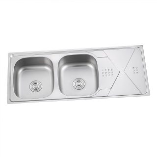 Top Mounted Single Bowl Kitchen Sink 201 Stainless Steel Spacious Double Bowl Design DEN002