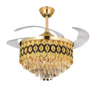 Luxury Tri-color 42 inch Crystal chandelier LED ceiling light with fan and remote 6 speeds ceiling fan light YDB04