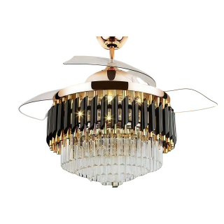 Modern Tri-color 42 inch Crystal chandelier LED ceiling light with fan and remote 6 speeds ceiling fan light YDB06