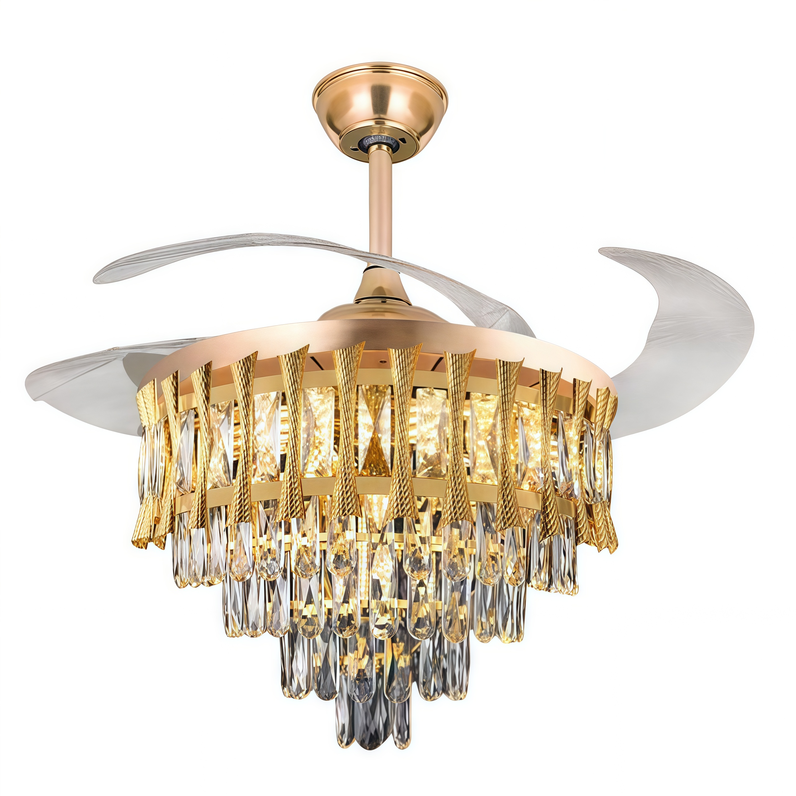 Modern Tri-color 42 inch Crystal chandelier LED ceiling light with fan and remote 6 speeds ceiling fan light YDB06