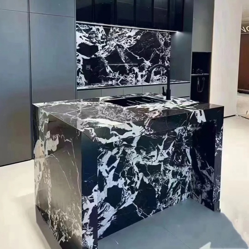 Bulgari Black Color Marble Stone Slabs Cut To Size Tiles For Interior Floor Tiles-DLS002