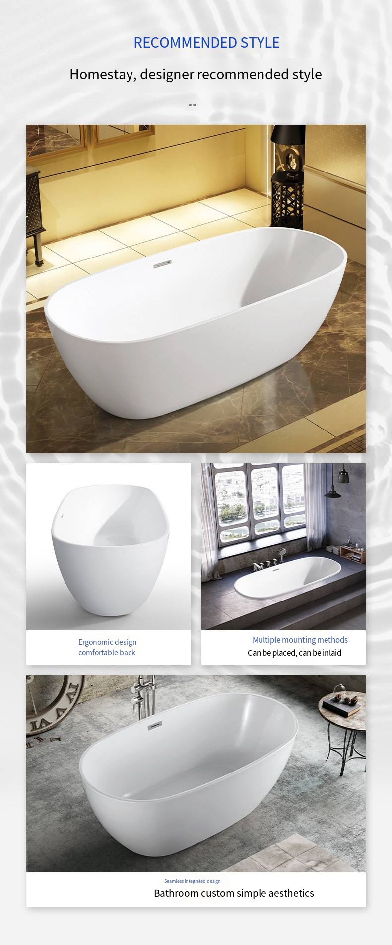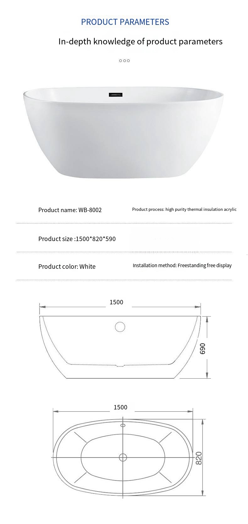 - One Person Bathtub: Designed for Single, this jetted bathtub allows you to have the relaxation experience yourself.