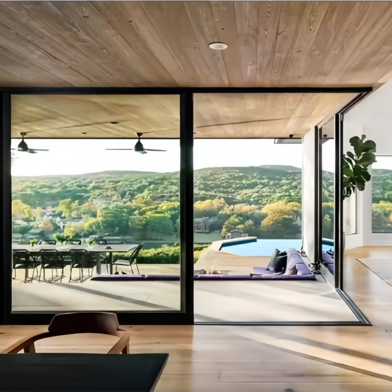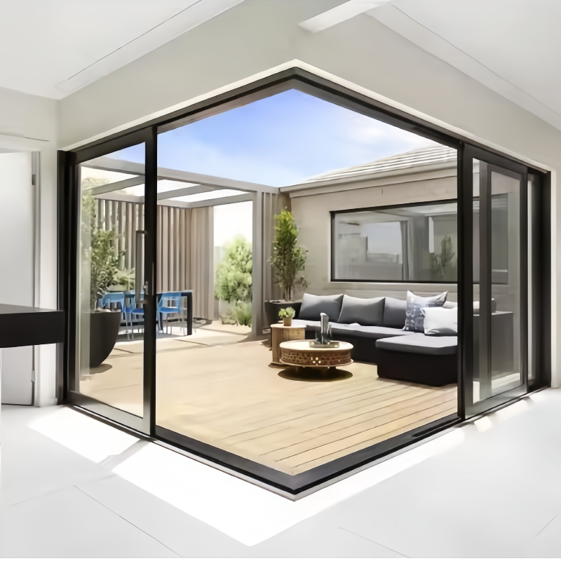 Corner Patio Doors Aluminum Sliding Glass Door, Balcony Glass View Door 3000MM, House Hotel Glass Door ZHP005
