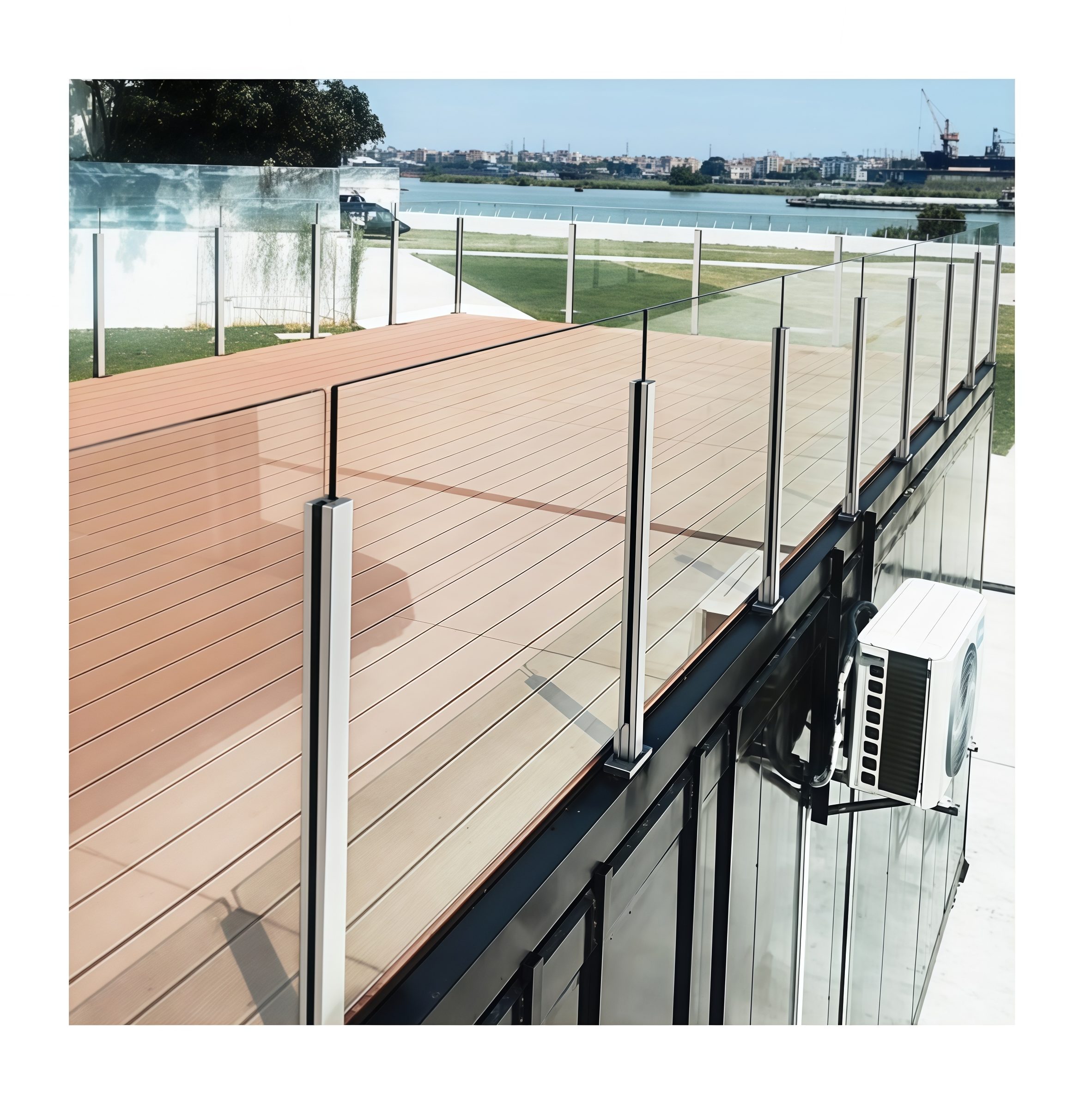 Isolated glass railings, frameless glass railings, and stainless steel glass isolation columns used for balcony railings and terrace enclosures