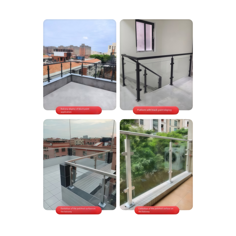 - Isolated glass railings, frameless glass railings, and stainless steel glass isolation columns used for balcony railings and terrace enclosures