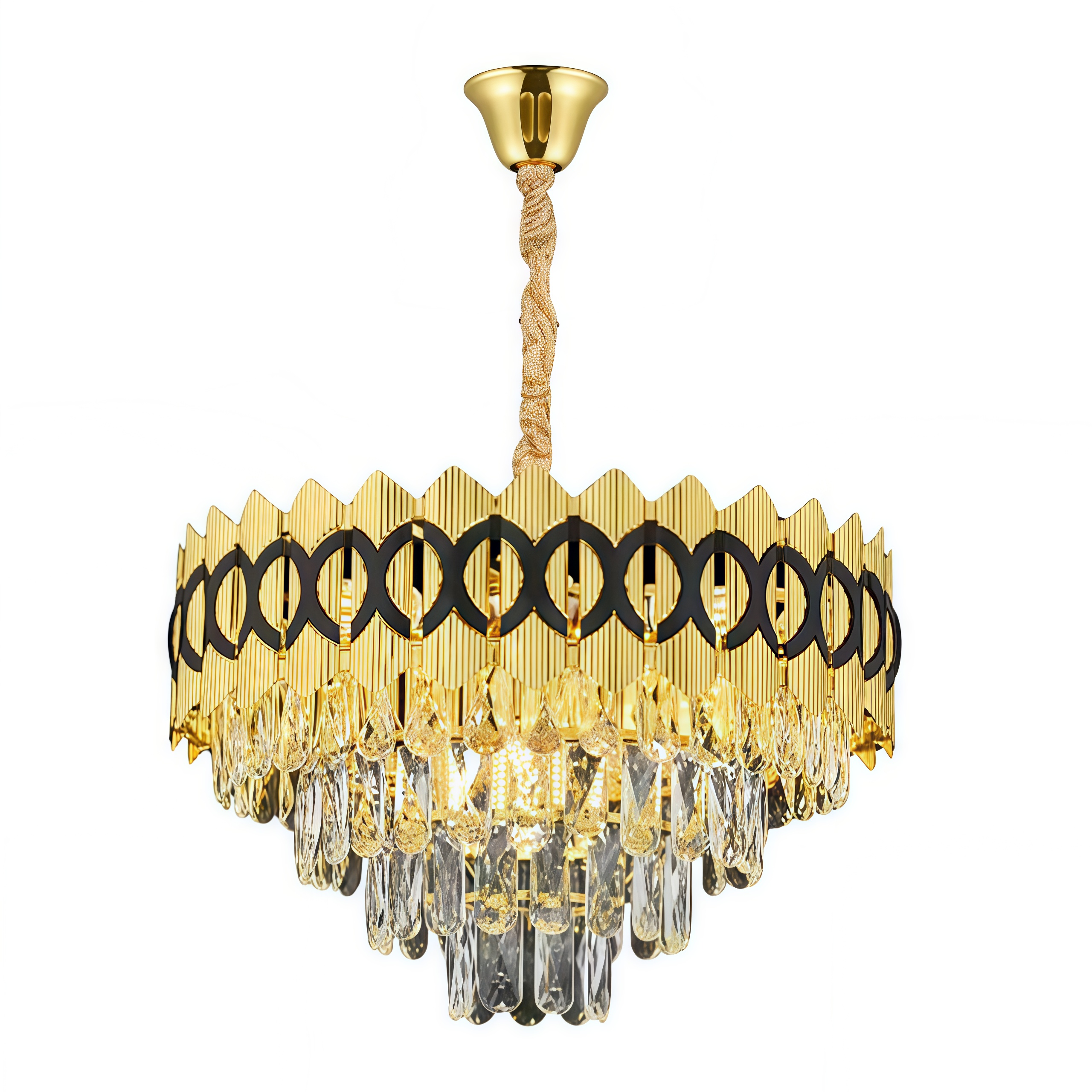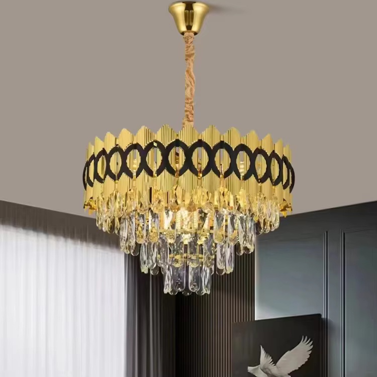 Modern Design Chandelier for Living Room Restaurant Bedroom Crystal Chandelier LED Decoration Indoor Lighting CYM046 ABOUT THIS ITEM Body Material: Iron + stainless steel + crystal Color Temperature(CCT): Without light source Control Mode: Switch Control Warranty(Year): 2-Year Light Source: E14 Product Weight: 6.5 KG Input Voltage(V): 110V-220V Body Color: Gold + Black Application: Living Room Lamp Sizes: Middle Product Dimension: 50CM Packing Dimension: 41*41*23 Lifespan (hours): 10000 Beam Angle(°): other Lighting solutions service: Light design, Project lighting design Single package size: 51X51X23 cm Single gross weight: 6.5 kg $ 54.00