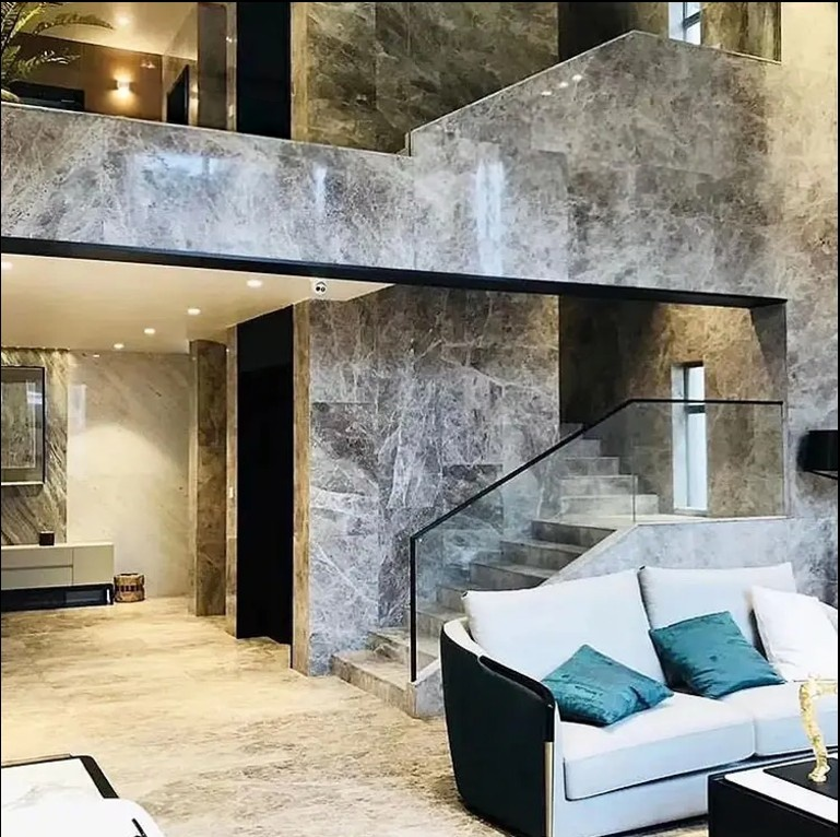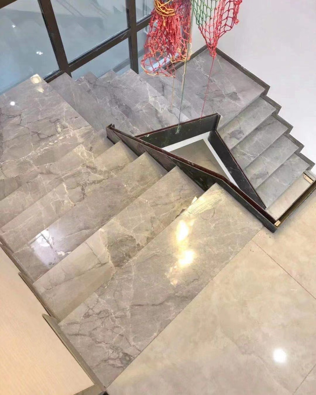 New Arrival Premium Quality Hermes Grey Marble Big Slab Modern Design with White Veins Polished Surface for Villa Floor DSL004