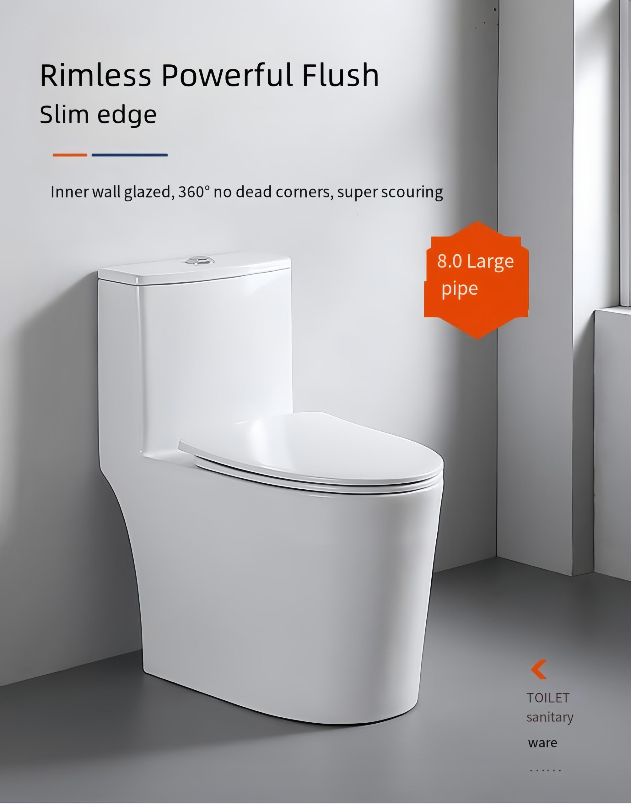 Be the first to review “New Generation Rimless Flush System Elongated Standard One Piece Toilet for Bathroom Comfort Height in White 8017” Cancel reply