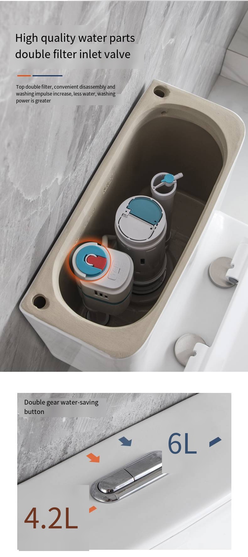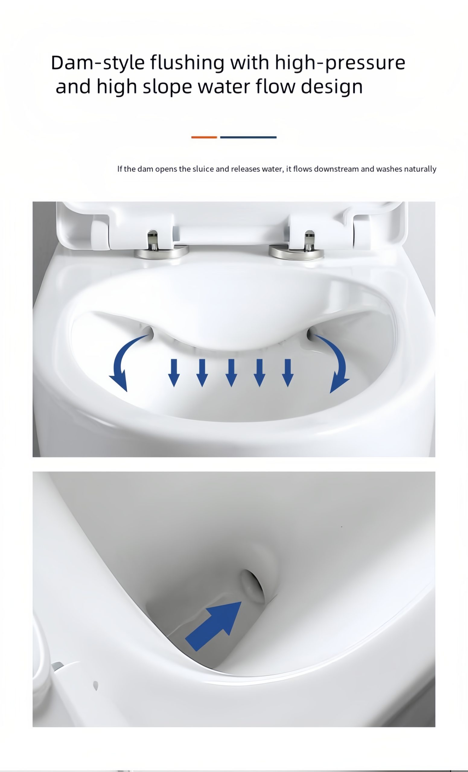 RIMLESS TORNADO FLUSH: Rimless tornado flush toilet features a powerful flush that efficiently eliminates waste. With a dual flush of 1.1/1.6 gallons per flush (GPF), averaging 1.28 GPF.